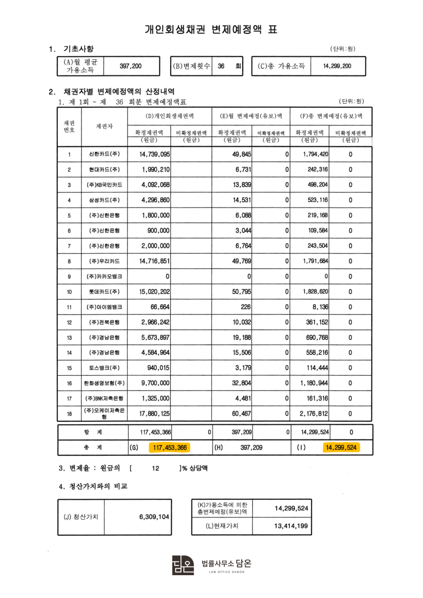 개인회생 전 채무내역과