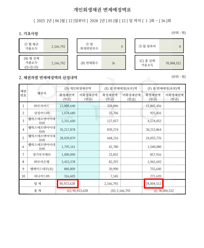 개인회생 후 변제내역