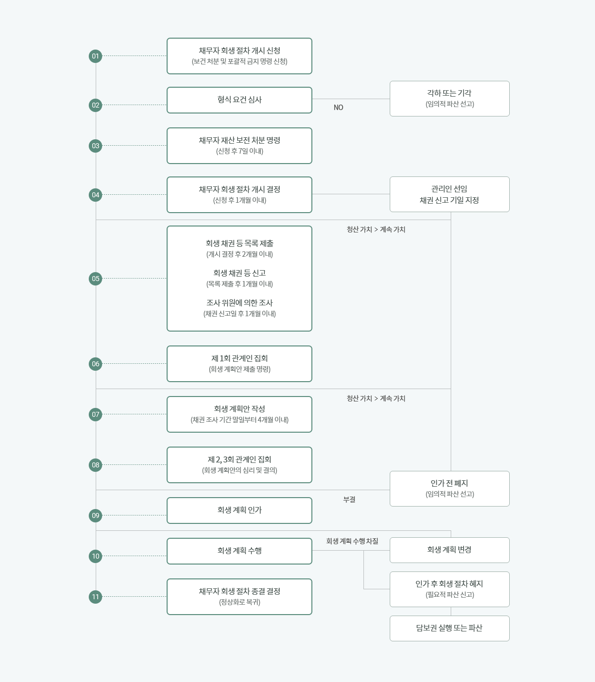 이해관계인에게 더 이익이 된다고 판단할 때, 법률관계 및 채무를 조정하여 정상 기업으로 복귀시키는 절차